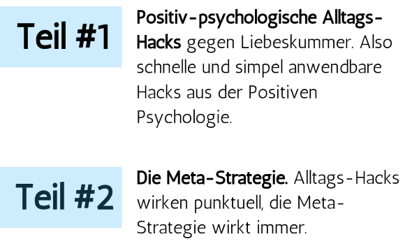 Wenn du dir denkst: „Puh, das ist schon ganz schön viel… mehr schaff ich nicht mehr!“, dann belass es mal dabei und mach diese beiden Techniken vom Anti-Liebeskummer-Toolkit.